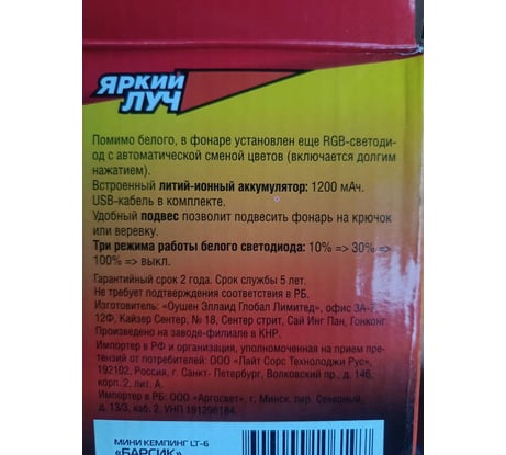 Вопросы и ответы о фонаре ЯРКИЙ ЛУЧ LT-6 Барсик желто-зеленый, аккум. мини-кемпинг, 3 режима+RGB 4606400106197