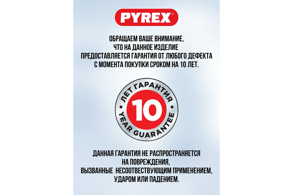 ! Рекомендуется для использования в традиционных и микроволновых печах, в посудомоечных машинах, в холодильнике и морозильной камере. При соблюдении рекомендаций Pyrex дает гарантию в 10 лет.
