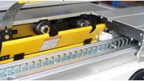 Двухроликовая каретка с модернизированным профилем Данная конструкция обеспечивает абсолютно ровный базовый пропил, в сочетании с плавностью и легкостью хода. Теперь фиксатор каретки располагается в удобном для оператора месте, и дает возможность зафиксировать ее в любом положении по всей длине обратного хода. |