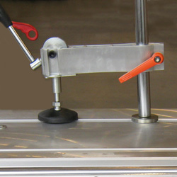- Алюминиевый фронтальный телескопический поворотный упор с линейкой и с двумя откидными упорами;