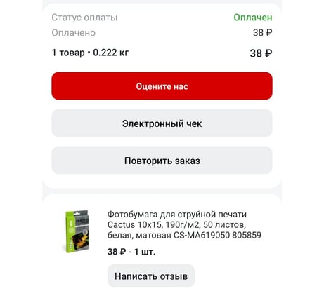 Фотобумага для струйной печати Cactus 10x15, 190г/м2, 50 листов, белая, матовая CS-MA619050 805859