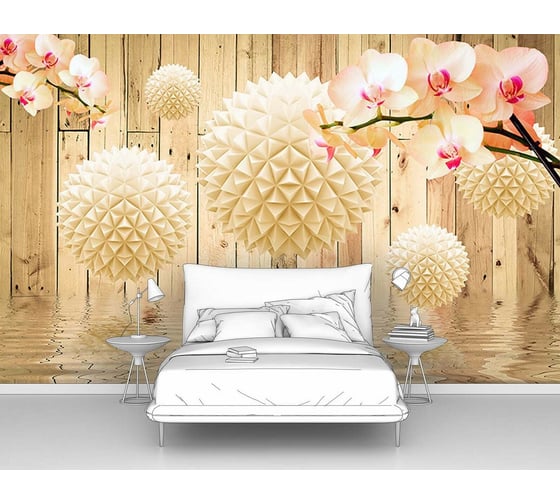 Фотообои 3d абстракции "Шары-ежи над водой на фоне забора" 200x125 ШxВ ООО Первое ателье pw96154-2