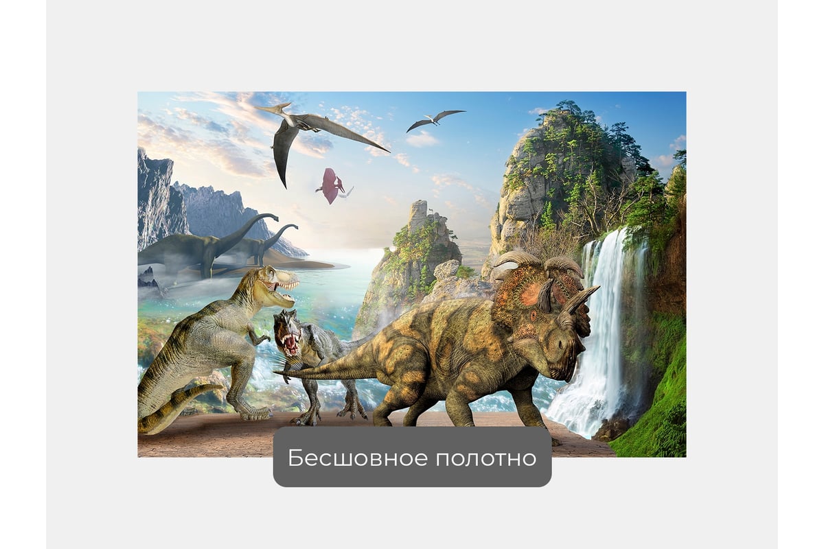 Фотообои ООО Первое ателье "Динозавры у водопада" 150x100 ШxВ pw28822-1 изготовлены путем нанесения оригинального авторского изображения на обойный материал, предназначенный специально для выпуска фотообоев.
