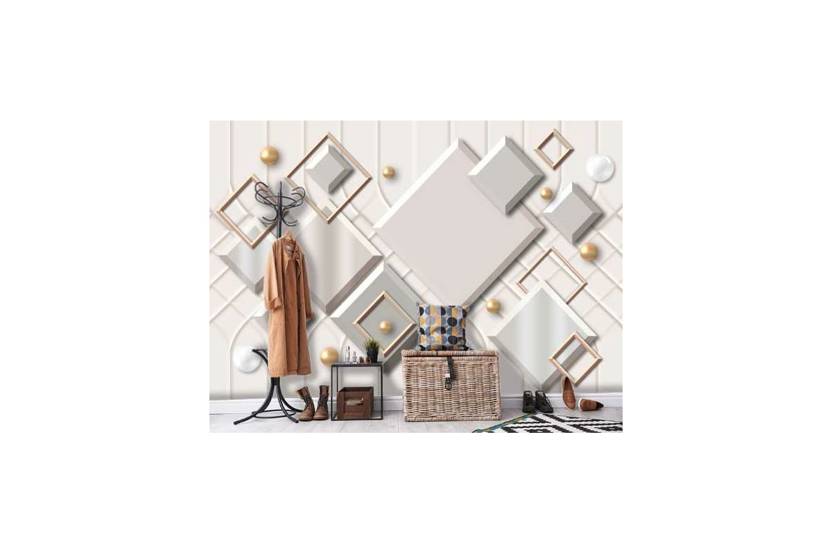 Фотообои DIVINO Геометрические фигуры 400x270 см Z-179 предназначены для внутренней отделки помещений. Изготавливаются на флизелиновой основе путем нанесения цифровой печати на винил горячего тиснения.