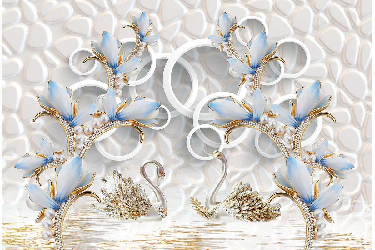Фотообои DIVINO Голубые броши с жемчугом 400x270 см Z-180 предназначены для внутренней отделки помещений. Изготавливаются на флизелиновой основе путем нанесения цифровой печати на винил горячего тиснения.
