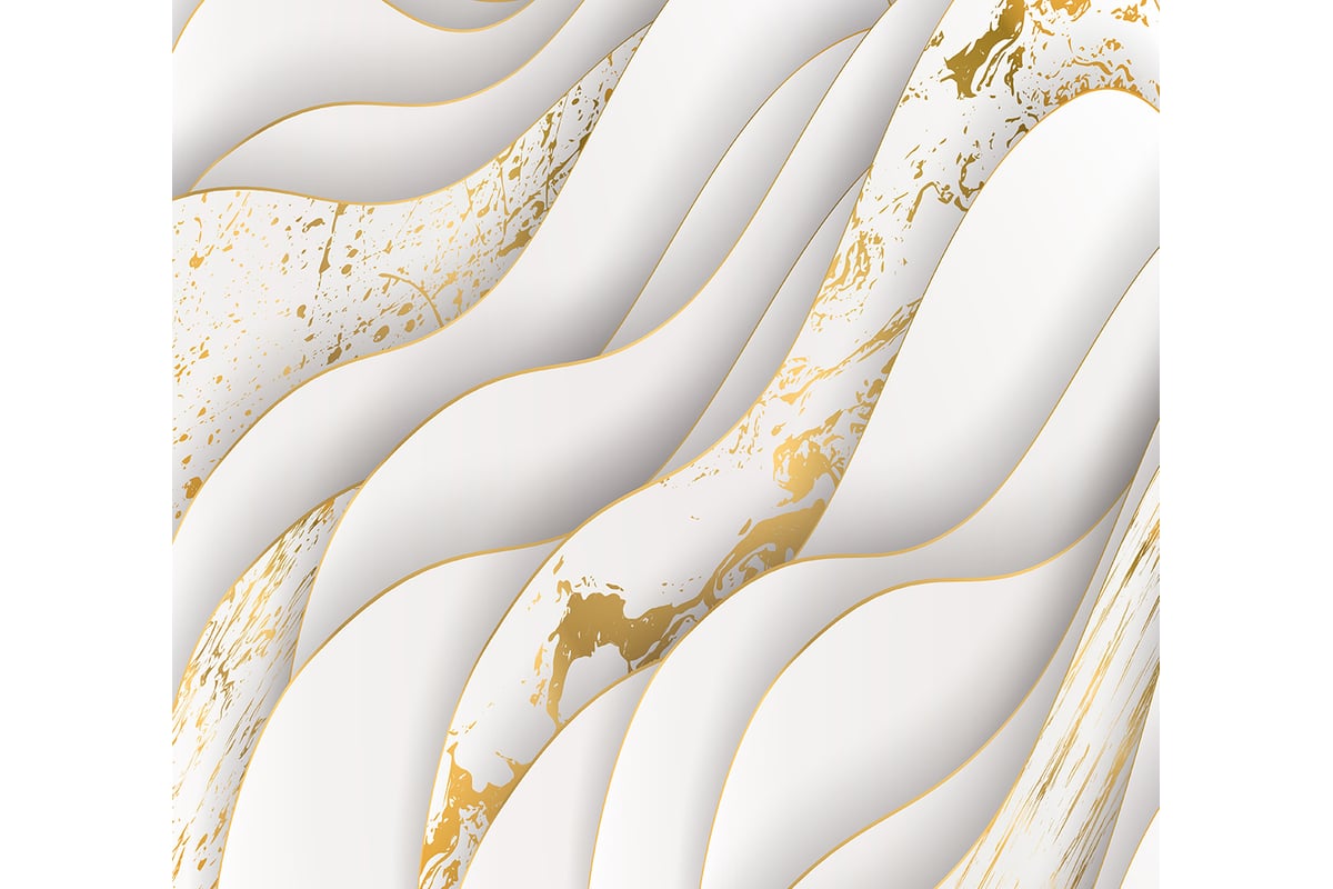 Фотообои DIVINO Золотые волны, 300x270 см T-111 предназначены для внутренней отделки помещений. Изготавливаются на флизелиновой основе путем нанесения цифровой печати на винил горячего тиснения.