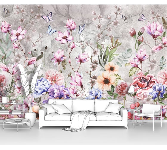 Фотообои лофт "Яркие цветы на серой штукатурке" 300x210 ШxВ ООО Первое ателье pw94002-3