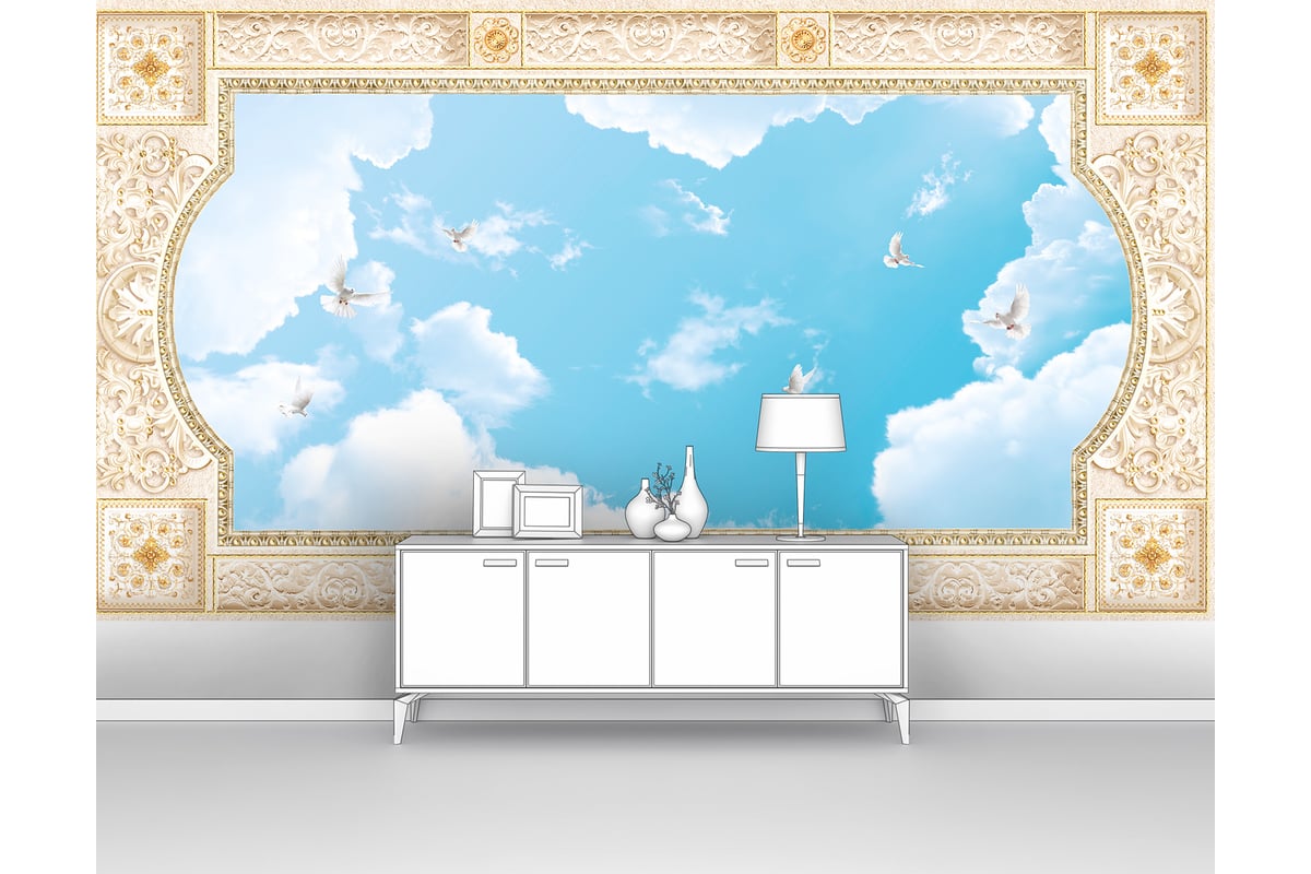 Фотообои ООО Первое ателье на потолок "Узорная рама на потолок" 400x220 ШxВ pw141506-4 изготовлены путем нанесения оригинального авторского изображения на обойный материал, предназначенный специально для выпуска фотообоев.