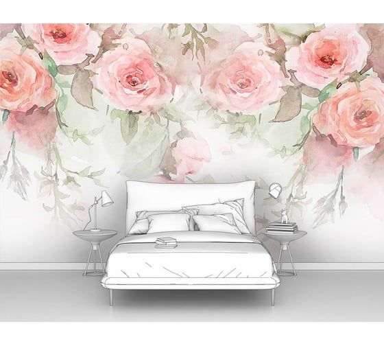 Фотообои ООО Первое ателье "Розы написанные акварелью" 300x190 ШxВ pw96654-3 изготовлены путем нанесения оригинального авторского изображения на обойный материал, предназначенный специально для выпуска фотообоев.