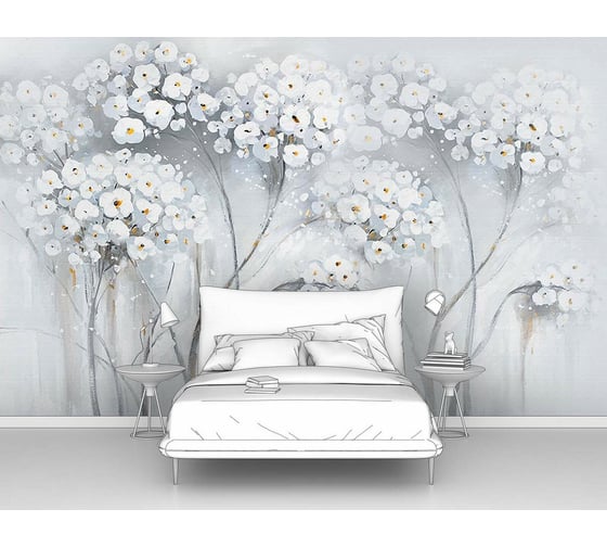 Фотообои ООО Первое ателье цветы абстракции "Шапки цветов на тонких стеблях" 200x125 ШxВ pw96240-2 изготовлены путем нанесения оригинального авторского изображения на обойный материал, предназначенный специально для выпуска фотообоев.