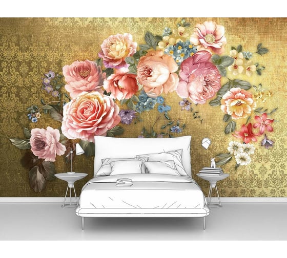 Фотообои ООО Первое ателье цветы "Розы на узорчатом фоне" 400x250 ШxВ pw141427-4 изготовлены путем нанесения оригинального авторского изображения на обойный материал, предназначенный специально для выпуска фотообоев.