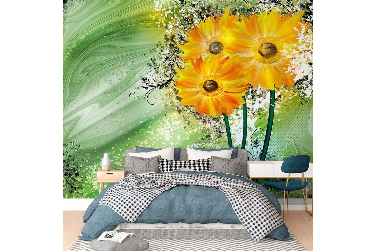 Фотообои ООО Первое ателье цветы Три желтых цветка с узорами 200x150 см 141455-1-9-52302