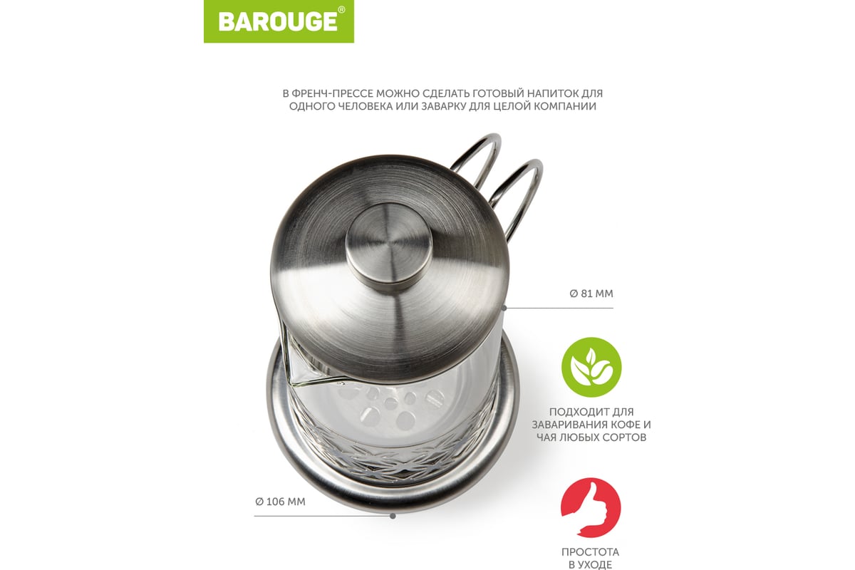 Френч-пресс BAROUGE Light, стеклянный, цвет серебро, 600 мл BF-710/60 BF-710 600 мл/фрэнч