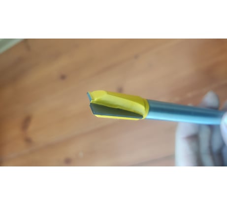 1. Слабая заточка режущих кромок. Ощутимо тупятся при работе. Материал начинает не срезать, а перетирать. Лечить периодической подточкой. Использую для этого "мокрый" камень на 6000. 2. На кромке имеются следы отпуска металла (см. 4-тую фотографию, на кончике кромки темное пятно), т.е. локальное изменение структуры, что увеличивает хрупкость и приводит к сколам. 3. Ощутимый дисбаланс. При работе приходиться опускать обороты меньше 4 шкалы на регулировке фрезера - это у меня где-то 14-16тыс об/мин. 4. Из-за неправильной формы наконечника и заточки пластин фреза плохо заглубляется в материал.