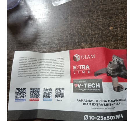 Фреза алмазная пальчиковая Extra Line V-TECH 10-25x50 мм, М14 Diam 320304 изготавливается методом вакуумного спекания по технологии «V-TECH», что позволяет работать на УШМ без водяного охлаждения. Предназначена для расширения отверстий в керамике, граните, керамограните, мраморе, ониксе, травертине при помощи УШМ. Имеет посадочное отверстие М14. Предназначается для работы 8000-12000 об/мин.