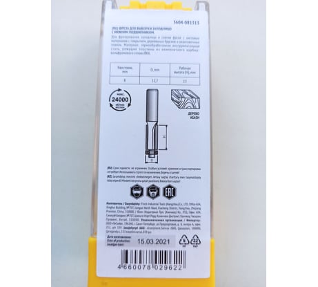 Технические характеристики фрезы для выборки заподлицо FIT 3604-081313