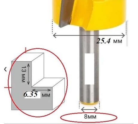 Фреза фальцевая хв-к 8 мм, d-25.4 мм, h-13 мм, l-57.3 мм vertextools 3527-081325
