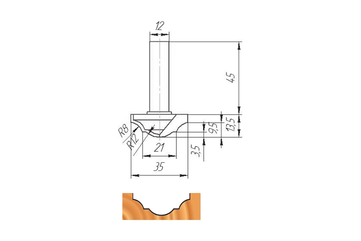 Фреза ФК 0130 МебельДрев 4627198884524 предназначена для обработки фасадов корпусной мебели на копировальных станках с ручной подачей и станках с ЧПУ.