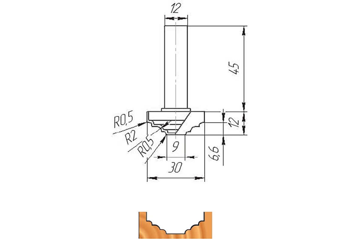 Фреза ФК 0490 МебельДрев 4627198885590 предназначена для обработки фасадов корпусной мебели на копировальных станках с ручной подачей и станках с ЧПУ.