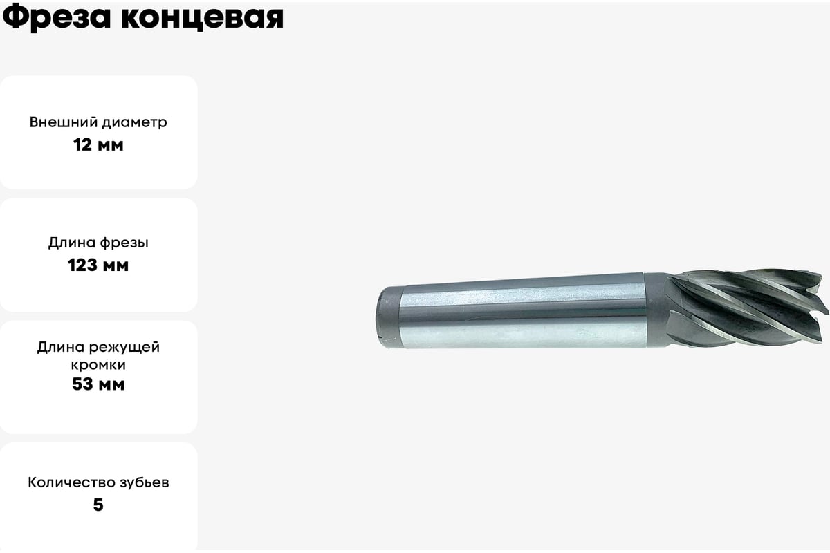 Отзывы о фрезе CNIC 12x53x123 мм; к/х; Р6АМ5; Z=5; КМ1 68859