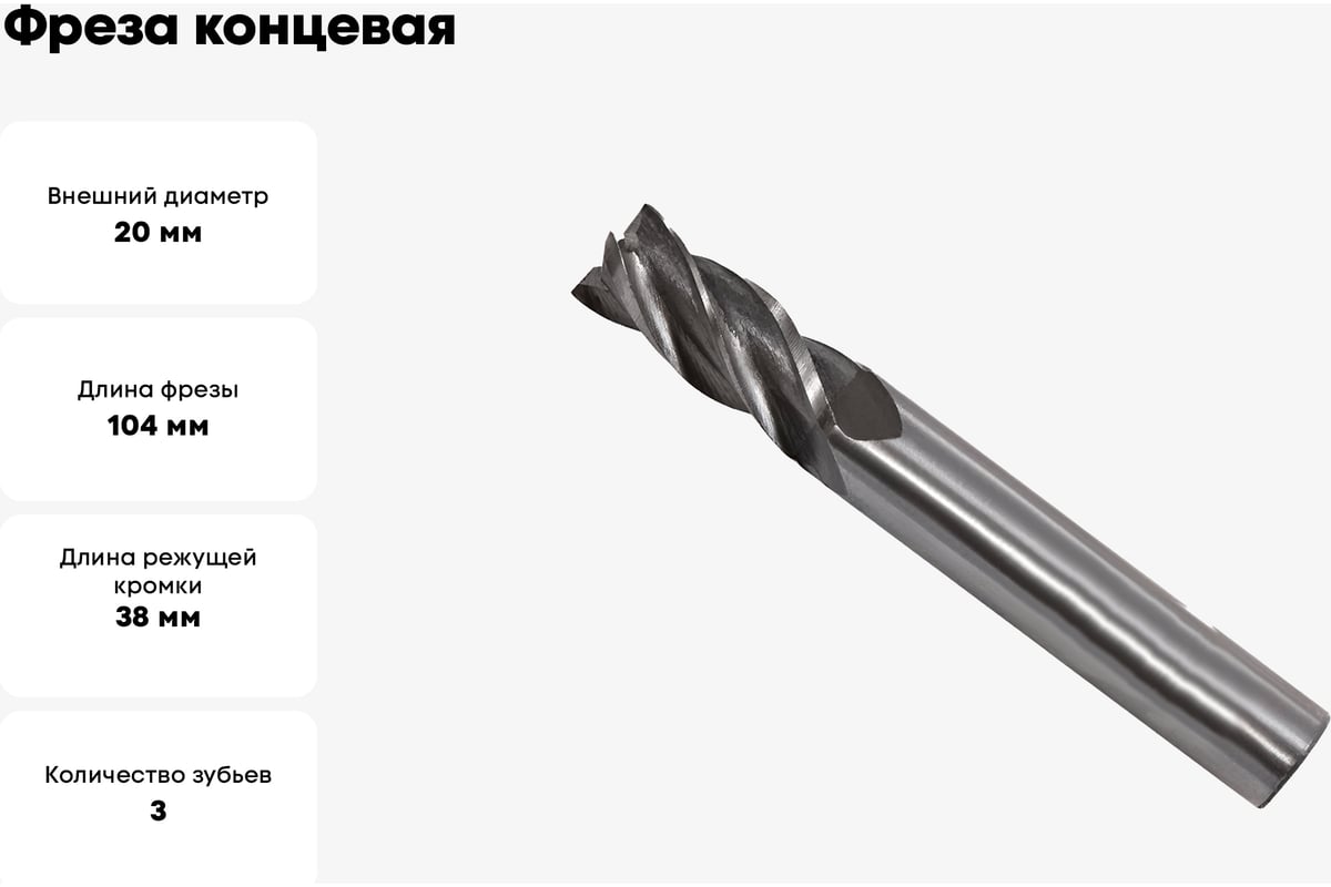 Вопросы и ответы о фрезе CNIC 20.0x38x104 мм; ц/х; Р6М5К5; Z=3 65639