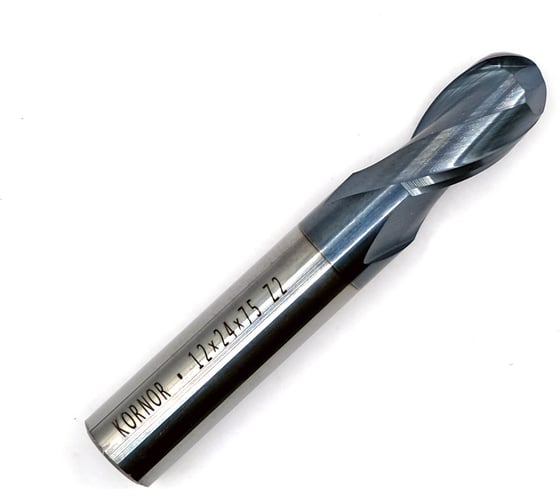 Фреза концевая твердосплавная KORNOR 12х24х75 Z2 ц/х-12мм HRC45 AlTiN (круглый торец) 45212240752