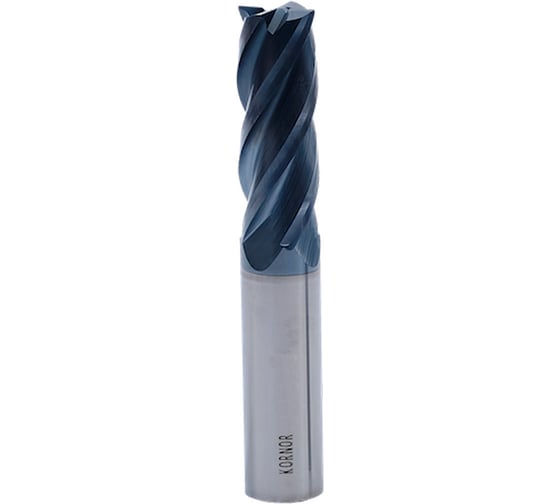 Рабочая часть концевых фрез KORNOR выполнена из высококачественного твердосплава на основе карбида вольфрама и представляет собой инструмент цилиндрической̆ формы с острыми режущими гранями, расположенными с торца и на цилиндрической поверхности.
