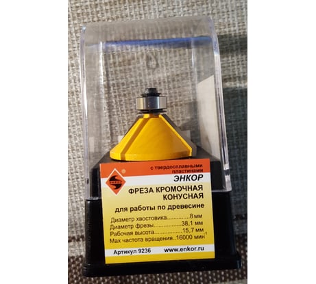 Отзывы о фрезе кромочной конусной (38.1х15.7 мм; 45°; хвостовик 8 мм) по дереву Энкор 9236