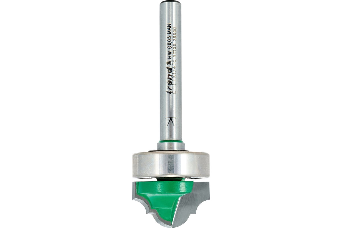 Фреза пазовая фасонная (22x12,7x64,5 мм, R4 мм, 2 лезвия, хвостовик 6,35 мм) по дереву Trend C111X1/4TC - идеально подходит для работы с шаблоном. Желательно, чтобы шаблон был как минимум на 5 мм толще, чем длина реза инструмента.