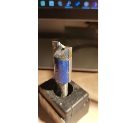 Пытался фрезеровать ей на Макете, но она постоянно вылетала из цанги, то есть рабочий диаметр ее, на какую-то долю миллиметра меньше положенного, что и послужило непрочности крепления. Оказалась практически бесполезна. Прогнал ей около полуметра. Замучился вставлять заново через каждые 5 см ((