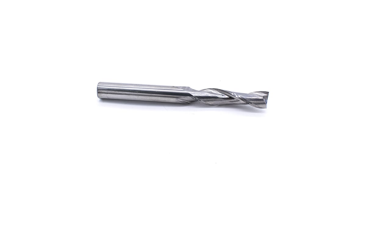 Геометрия фрезы обеспечивает отвод стружки вверх, что обеспечит меньший нагрев фрезы (по сравнению с фрезами стружка вниз), и чистую нижнюю поверхность заготовки, если фрезеровать материал насквозь. Две режущие кромки фрезы позволят обрабатывать материалы быстрее, по сравнению с однозаходными фрезами, но это и увеличивает нагрев фрезы.