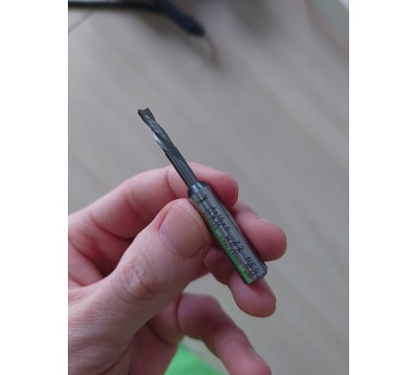 Без проблем вырезает отверстия в ЛДСП за один проход. В сравнении с затратами на другие фрезы недорогая. Фрезер RT0700, обороты приблизительно 22-24 тысячи. Не горит ни фреза, ни материал при нормальной подаче.