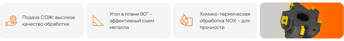 - Максимальный съем металла за один проход с высокой производительностью на станках с средней и малой жесткости