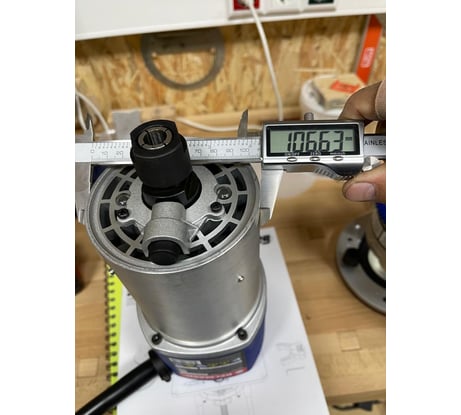Отличный мощный фрезер. В руководстве по эксплуатации дан диаметр барабана электродвигателя 105 мм, реальный диаметр - 106,6 мм.