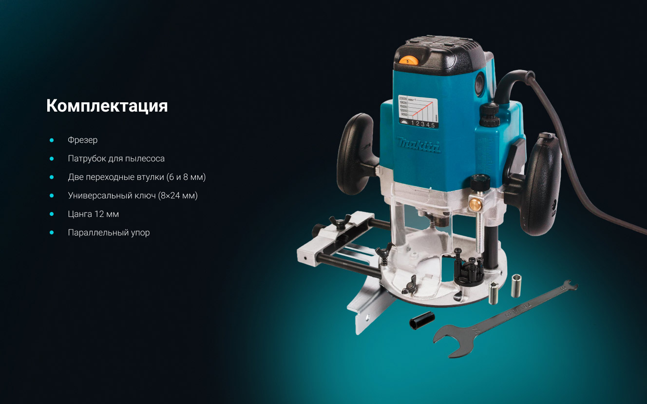 Качество исполнения деталей, продуманный функционал, неубиваемость, точность работы, надежность в работе (держу в руках 4 кг и понимаю это), цанга на 12, шнур. Симметричная подошва, имеющая форму круга (16 см), незаменима для работы с шаблонами.