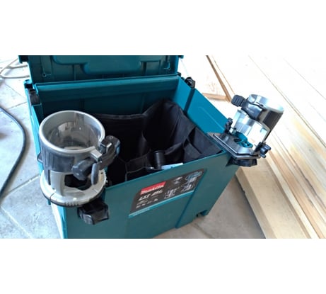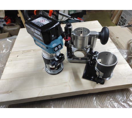 Доброго времени всем, начну с того, что написать хороший отзыв дело не лёгкое, но в битве за первое место на розыгрыш от Makita поехали. Заказ №2408-224809-57797 Фрезер Makita LXT DRT50ZJX2 приобрёл ещё в августе двадцать четвёртого, был хороший день, была хорошая цена на данную комплектацию от ВИ. В домашней мастерской хоть и есть сетевая Makita 3711 но комплект по ней очень голый. Покупать отдельно под неё базы не стал. А тут комплект наполнен и базами и цангой на 8мм. Ни так давно поступил заказ от деток, им для игр в игрушки стал необходим дом. Они нарисовали мне проект, папа его доработал, честно говоря усложнил себе задачу, смотрите фото. Прикупил фанеру 15мм 10мм и 8мм заготовил заготовки. Так как с работы привез домой инструмент ни давно, решил поиграться DRT50 срезаю пломбу с кейса MakPac. Так как акб постоянно в работе, не было случая воспользоваться в домашней мастерской, пахала 3711. А тут думаю, как раз пока дома батарейки, вскрою и посмотрим что там за зверь, честно сказать отсутствие провода при работе весьма оставило положительные эмоции, а работа под нагрузкой вообще сказка, получилось гораздо быстрее сделать чем сетевой, так как она при более быстром прохождение реза, начинает затухать по оборотам. Но опять ей же глубина бывала работ значительно больше, чем этой fifty на этом проекте. Так же, то, что есть у fifty подсветка, значительный плюс, регулировка оборотов, для разного вида материалов, плавный старт. На акб 5а/ч прошел фрезой 8мм глубина 3мм порядка около 15 метров, и акб села от полного заряда до одного деления. Заслуга безщеточного мотора и оригинальных акб от реноватора DTM52RTJX1 В процессе данного проекта подключил в эту работу много инструмента серии Lxt и понял одно, четырёх батарей что есть у меня, не хватает для полноценной продуктивной работы всем инструментом в один забег. Да на работе их более чем хватает на шурик перф и ушм. А вот работая со всем что на фото, если пропустит модератор, честно сказать не удобно, перекидывать батарейки хоть это и не долго, но всё же. Да и с батарейками у меня подход такой, когда разряд подходит к одному делению, я ни когда не ставлю из сразу в зарядку, жду примерно около пол часа, чтоб остыли банки, только после этого на зарядку, так они будут жить гораздо дольше, хоть и сам зарядник защитит от заряда перегретых банок, но так ещё надёжнее. В целом по самому фрезеру одно скажу, то что прикупил его, очень рад покупке, хоть и воспользовался им спустя чуть больше года, оно того стоило. В самом проекте так же приняли участие модели от макиты DDF487 DBO180 DBO380 DJR185 DAS180 На фото жаль не успел завершить на 100% проект, так как вечерами ни так и много времени на это хобби. А отзыв пора уже загружать, в целом вернёмся к DRT50ZJX2 Если у Вас есть акб линейки Lxt то данную комплектацию можно брать, так оно выходит дешевле, если же собрать отдельно такой же комплект.