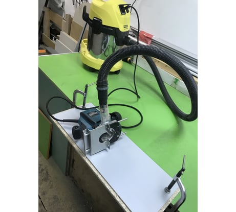Отсутсвие точной настройки упора , отсутствие точной настройки глубины фрезерования , короче фрезер для кромочных фрез с обгонным подшипником , если захотите выбрать паз с большой точностью будут танцы с бубном