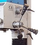 Две ступени и вариатор обеспечивают плавную регулировку скорости вращения шпинделя. Ручка быстрой подачи в форме звезды обеспечивает удобный хват. Перемещение пиноли отображается на миллиметровых линейках и дублируется на цифровом дисплее.