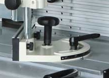 Позиционирование детали под углом Специальный упор перемещается по Т-образному пазу стола и позволяет располагать заготовку под углом. |