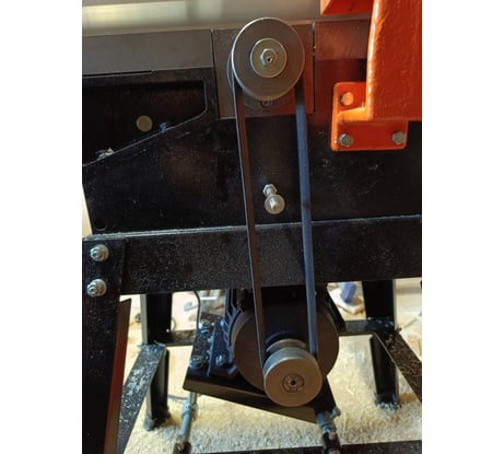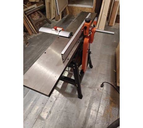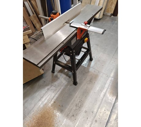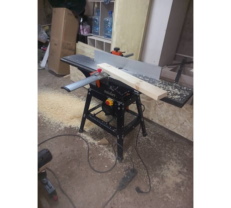 Собрал наконецто данный станок. Покупал, так как за данную цену аналогов нету. Пока не работал, но запускается, уже хорошо. При сборке будьте готовы к танцам с бубнами. У меня косяки были такие. 1) при сборке каркаса нужно тянуть гайки довольно сильно так как квадрат болта, по длинне больше толщины металла каркаса, поэтому сорва несколько гаек, были в мастерской, заменил. 2) два направляющих прутка крепления площадки дигателя к станине. Так вот одна была сантиметров на 6 короче второй, соответственно для креления не пригодна. Хорошо в хозяйстве нашлась трубка нужного дияметра, отрезал по размеру и установил. 3) как подключить двигатель, в инстукции этого нету, в деревне где мастерская интернета тоже нету. Пришлось подключать на свой страх и риск, на те клемы по которым визуально было видно, что они отпущены и провод был снят оттуда после проверки двигателя на производстве. 4) ремни которые в комплекте оказались настолько малы, что просто физически их нельзя одеть на шкивы. Размер 13×838Li.не знаю только у меня так. В отзывах читал, что у когото шкивы одинакового диаметра, у меня все нормально, нижний шкив большего диаметра. Если кто знает напишите размер ремней которые нужны. 5) после сборки осталась уйма лишнего крепежа, в основном шайбы, несколько болтов и четыре больших гайки в отдельной упаковке, ума не приложу откуда они, ведь такого размера крепежа там просто нет. 6) будьте готовы что боковой упор вы в таком виде в котором купили ипользовать не сможете, поэтому прийдётся колхозить. Мне нужен угол только 90 градусов, поэтому скорее всего подберу аллюминиевый профиль и зажму струбцинами. При всём вышеизложенном считаю за такие деньги покупку оправданной, если станок будет нормально работать, так как я в серьезном деле его еще не испытал.