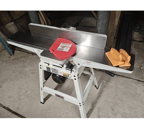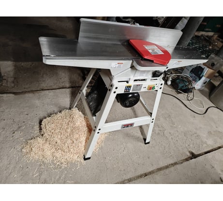 Столы приемный и подающий не в одной плоскости. Задняя часть приёмного стола провис на примерно 1.5 мм относительно плоскости подающего стола. Без доработки работать на нем невозможно. От покупки отказался. Аналогичная ситуация была у меня на большом фуганке от Джет jj-8L-M . Тогда это обнаружилось только после доставки и сборки дома. Пришлось много прыгать во круг него и подкладывать фольгу в соединении типа ласточкин хвост.