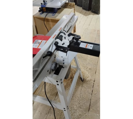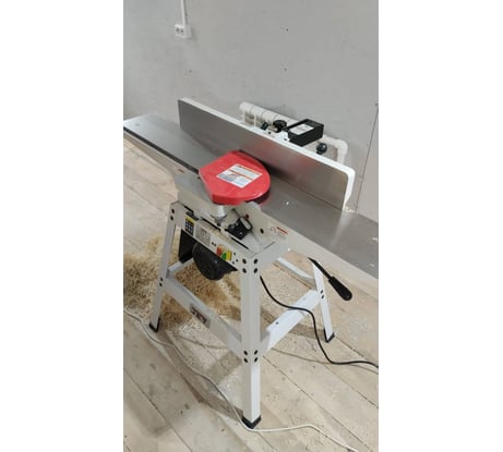 Лëгкость сборки, столы и упор очень хорошо отшлифованы, работает тихо, столы паралельны, никаких дополнительных настроек столов не проиводил, только подогнал приëмный стол по ножам. Ножи с завода острые, прогнал полкуба сосны, полëт нормалтный.