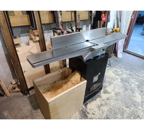 Регулировка двигателя такая же неудобная как и на любых других фуганках Первый день выставлял столы в одну плоскость и такак не было опыта в этом деле заняло это много времени и без поверочной линейки сделать это трудно но возможно, в общем пивная банка пошла на проставки под столы Принимающий стол и параллельный упор нормальный по плоскости ,а вот подающий стол с бугром в самом ответственном месте а именно ближе к ножам, весь вечер шлифовал вручную, Ножи удобно регулируются Ключи рожковые в комплекте которые можно сразу бросить саседям в огород Упакован был вроде не плохо , приехал целый Откатное колесо а точнее куда оно крепится но некак не расчитанно для такого веса станка, стенка тумбы сильно откинается, позже буду колхозить От двигателя идет вибрация даже на снятом ремне Думаю из за шкива , В замках столов нет смазки позже буду снимать и смазывать В общем даже незнаю советовать или нет данный станок к покупке