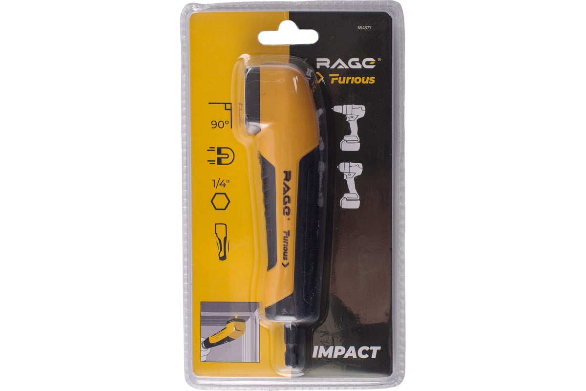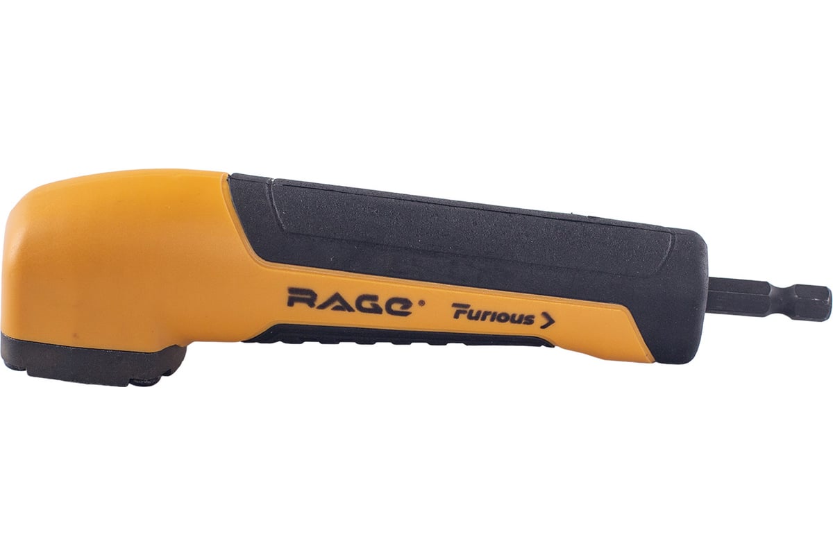 Насадка ударная угловая 1/4" HEX RAGE Furious имеет резиновое покрытие для удобства работы. Предназначена для совместного использования с шуруповертами и винтовертами в роли удлиняющего элемента при закручивании шурупов, болтов или винтов в труднодоступных местах и в условиях ограниченного пространства