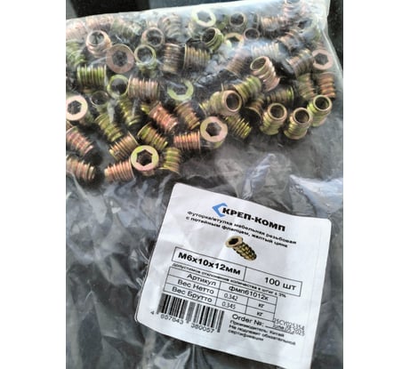 Футорка/втулка мебельная резьбовая с потайным фланцем КРЕП-КОМП 6х10х12 ЖЦ (100шт) фмп61012к