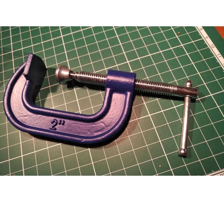 Хорошая струбцинка, крепкая. Забор, наверное стягивать ею не стоит, а зафиксировать пару небольших деталей - самое оно. Достаточно увесистая. Пятка условно-ровная, деталь не болтается. Резьба винта ровная, капля смазки не помешает. На мой взгляд - можно брать.