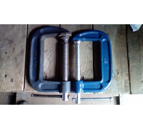 Отличная струбцина. Благодаря трапецевидной резьбе зажим детали получается быстрее и крепче. Качественный,крепкий материал, хорошее лакокрасочное покрытие, все сделано достойно. Использую для зажима деталей ЛДСП для распиловки и сборки на дому. Что радует - прижимная круглая платформа на конце резьбы ровная, литая и не оставляет вмятин на детали. Ее полный аналог - струбцина Gigant 100*55 GGC-100. Я взял обе для сравнения и понял, что разница лишь в цвете краски и покрытия, остальное 1в1. На фотографии: слева Gigant, справа Сибртех. Лично я доволен обеими и рекомендую к покупке.