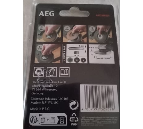 Технические характеристики гайки для УШМ AEG 4932358225