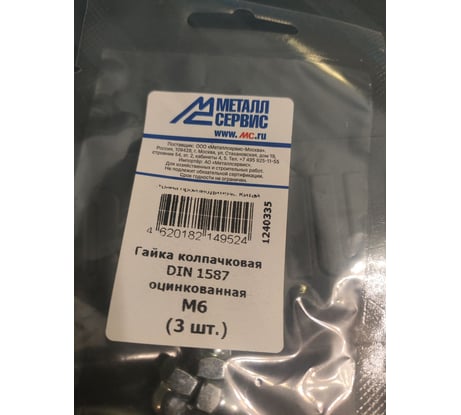 Гайка МЕТАЛЛСЕРВИС M6 DIN 1587 колпачковая, оцинкованный, 3 шт. МС 1240335