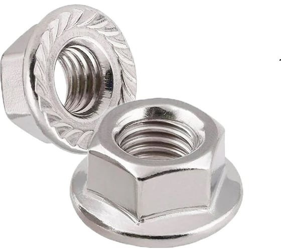 Гайка нержавеющая с фланцем EDELFIX М6, DIN 6923, А2, с зазубринами, шестигранная 50 шт 692326 50